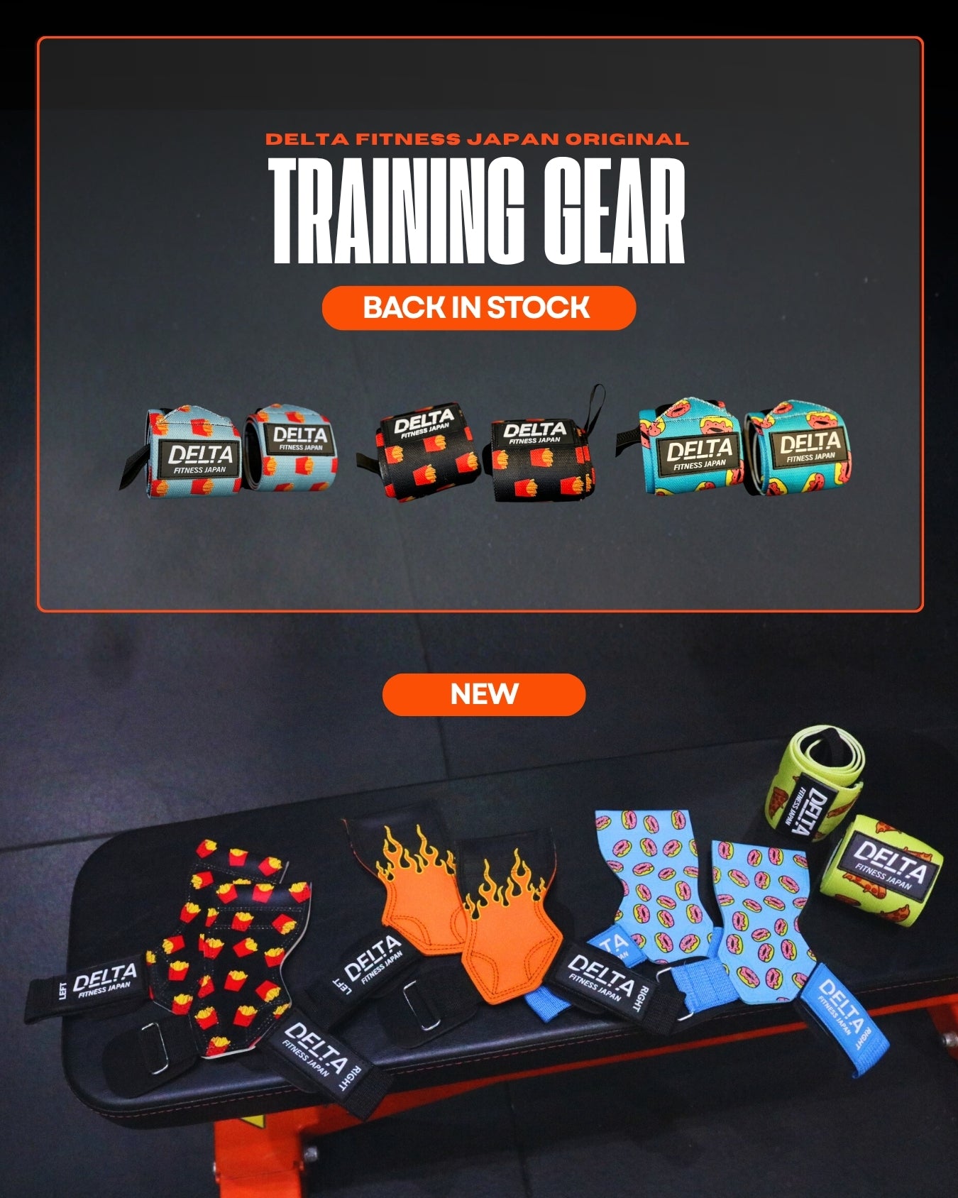 ポテトやピザ、ドーナツモチーフ、炎グラデーション×チェックパターン、迷彩柄など、DELTA FITNESSならではの他にはないユニークなデザイン。トレーニング中のモチベーションもアップ。